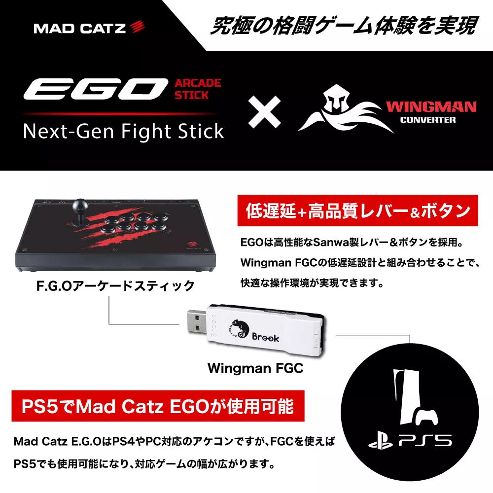 Mad Catz アーケードコントローラー E.G.O. Arcade Stick & Brook Wingman FGC2 PS5コンバーター セット