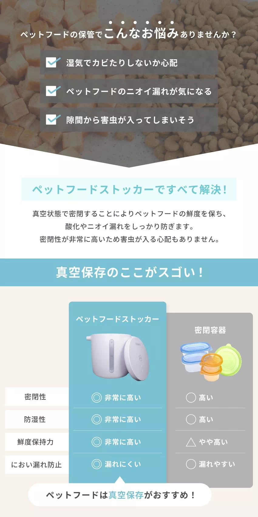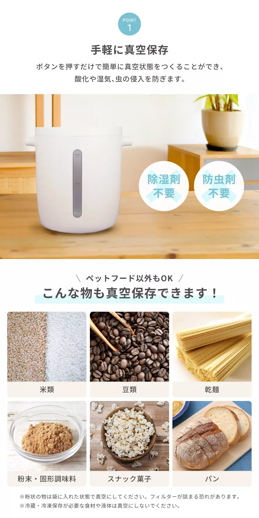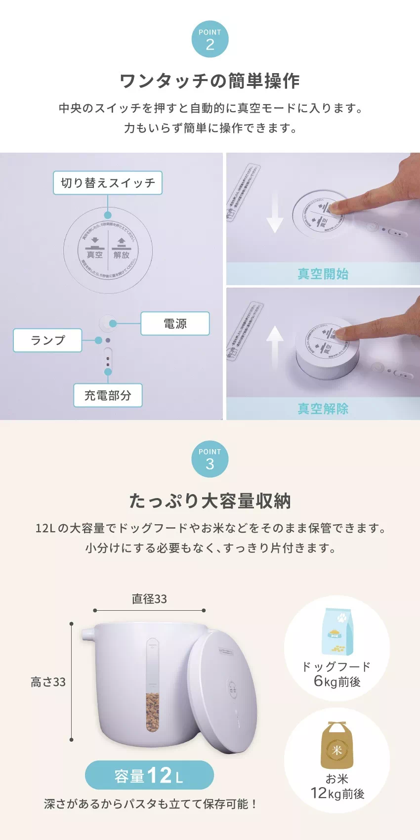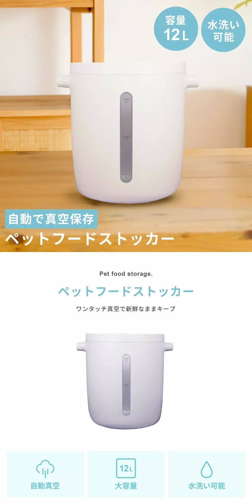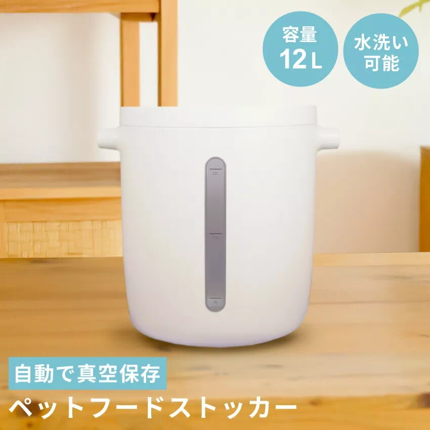 Pure Luxe ペットフードストッカー 12L ホワイト PU-PEFOAA 計量カップ付 大容量 おしゃれ 真空 おすすめ