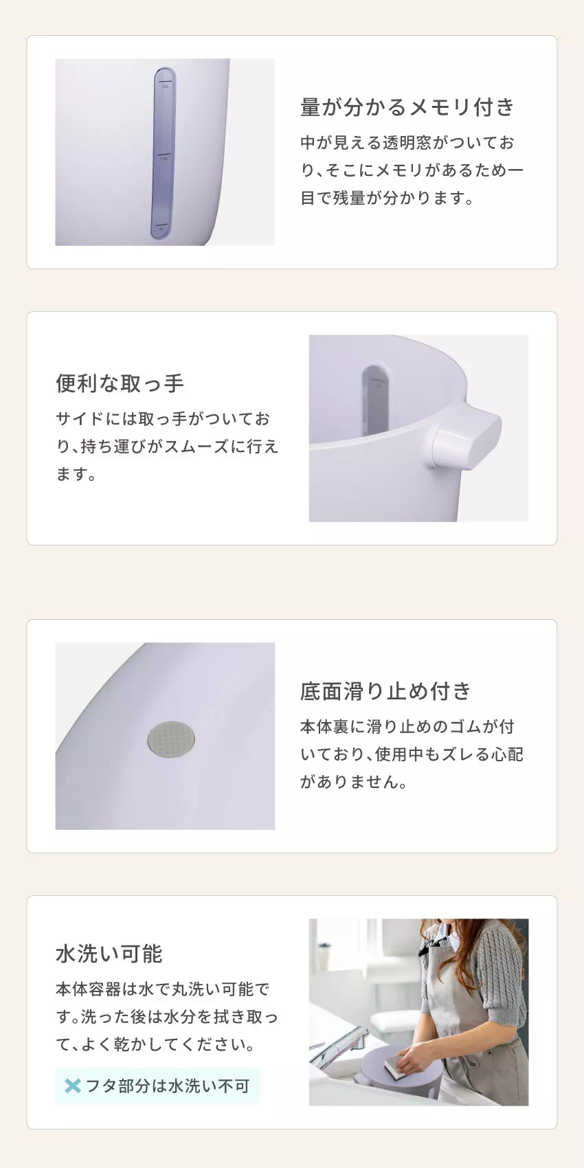 ※蓋裏面にある、丸いスポンジ状のフィルターは外さないください。